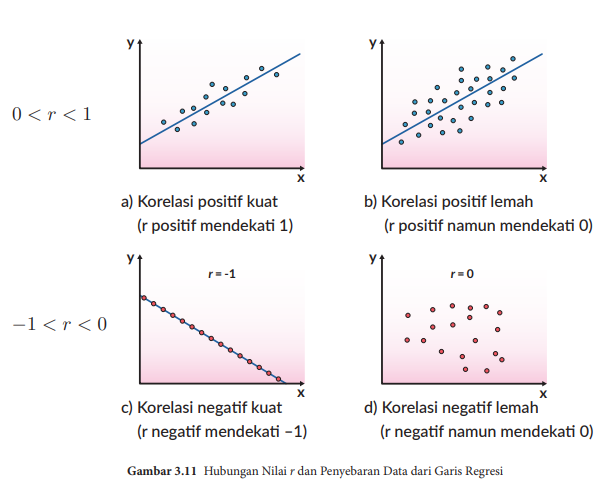 Kemarin kalian telah mempelajari apa itu Analisis Korelasi. Sebelum mempelajari lebih lanjut, gunakan tautan ini sebagai simulasi untuk melihat bagaimana garis regresi akan bergerak dan bagaimana nilai koefisien korelasinya berubah terhadap penyebaran datanya. Gunakan Gambar 3.10 dan 3.11 di bawah ini sebagai bahan referensi tambahan ketika melakukan simulasi.